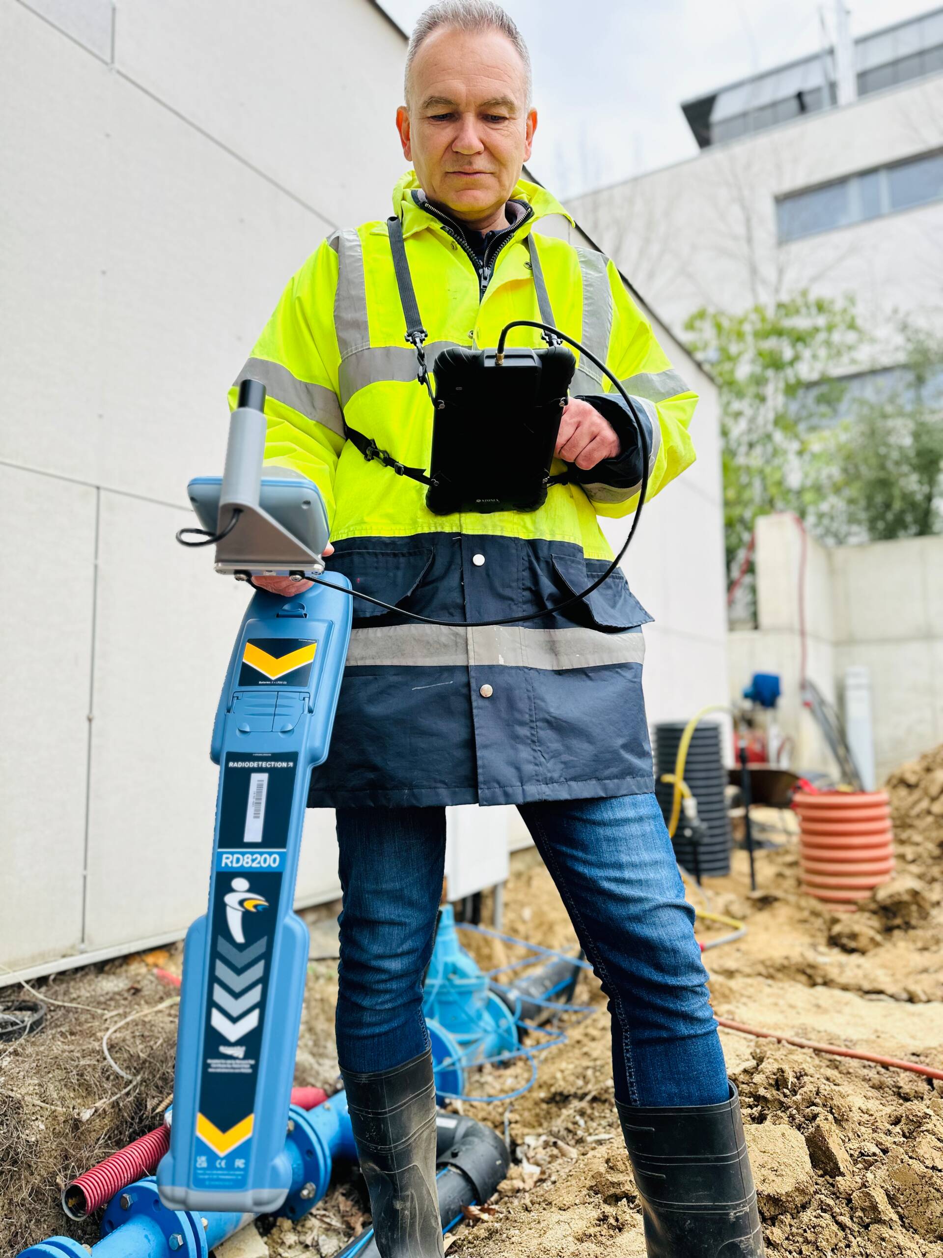 Trasujte a zaměřujte body s geodetickou přesností v jednom kroku pomocí lokátorů Radiodetection a Georafana, který je tak lehký, že vůbec nerozhazuje ergonomii. A obrovskou přidanou hodnotu je, že lze použít i samostatně bez lokátoru pro zaměřování i jiných bodů zájmu nebo ke zpětné navigaci na již zaměřené tělo, aniž byste museli lokátor furt "tahat"