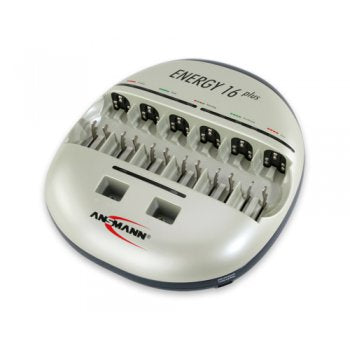 Mikroprocesorem řízená Hi-tech (100-230V) nabíječka Ansmann Energy 16 Plus pro NiCd a NiMH akumulátory s výstupem USB. Současně lze nabíjet jakékoliv kombinace uvedených akumulátorů. Nabíjecí čas je v závislosti na kapacitě a stavu akumulátorů.