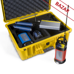 Tento kufr není jen o ochraně, ale především o funkčnosti: integruje nabíjecí jednotku celého systému, což umožňuje nabíjení baterií (vysílačů, přijímače i dotykového korelátoru) přímo v kufru ze sítě nebo z vozidla. To zajišťuje, že je celý systém vždy připraven k okamžitému nasazení.