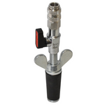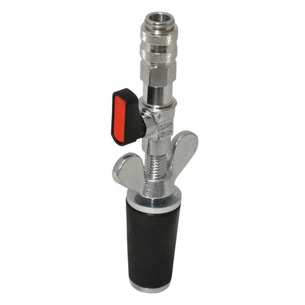 Na konci je špunt opatřen připojovací rychlospojkou FS21 (kompatibilní s protikusem MS21, který bývá osazen na našich hadicích). Závitový motýlek roztáhne gumovou zátku tak, aby velmi těsně držela v potrubí. Skrz špunt lze měřit tlak nebo provádět tlakové zkoušky potrubí do 2 bar.